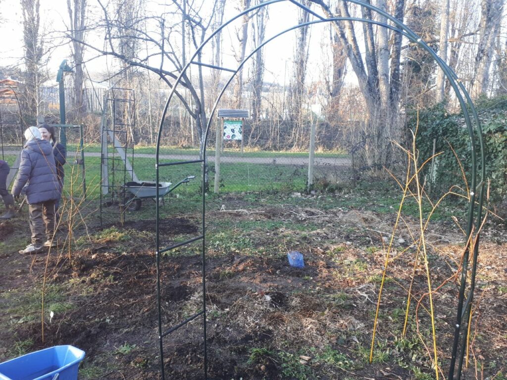 🔹planter nos deux petits kiwis qui n’ont pas trouvé leur place car nous voulions les faire pousser sur le toit d’une petite cabane qui a été abîmée par le vent…