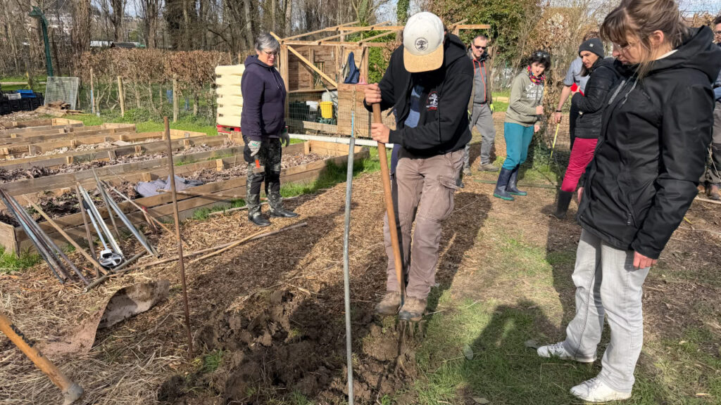 La matinée était destinée au travail théorique, l’après-midi fut le début de la mise en pratique. Nous avons créé 7 nouvelles zones de cultures et envisagé les cultures à venir !